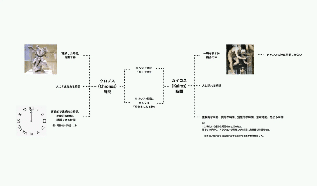 一方、カイロス時間とは、主観的で質的な時間のこと。