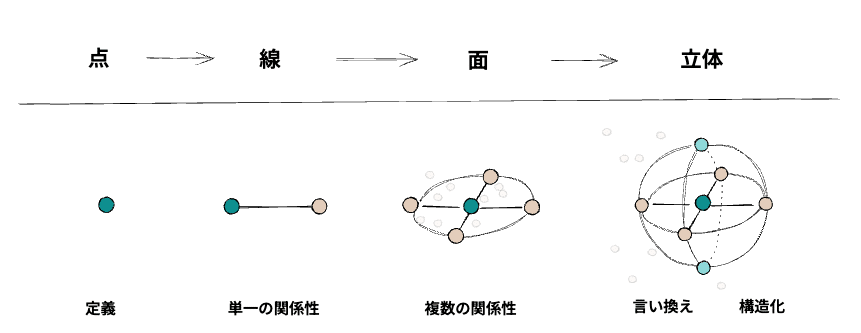 長らくそう思っていたところ、最近になって「点・線・面・立体」という思考のためのツールを手に入れました。